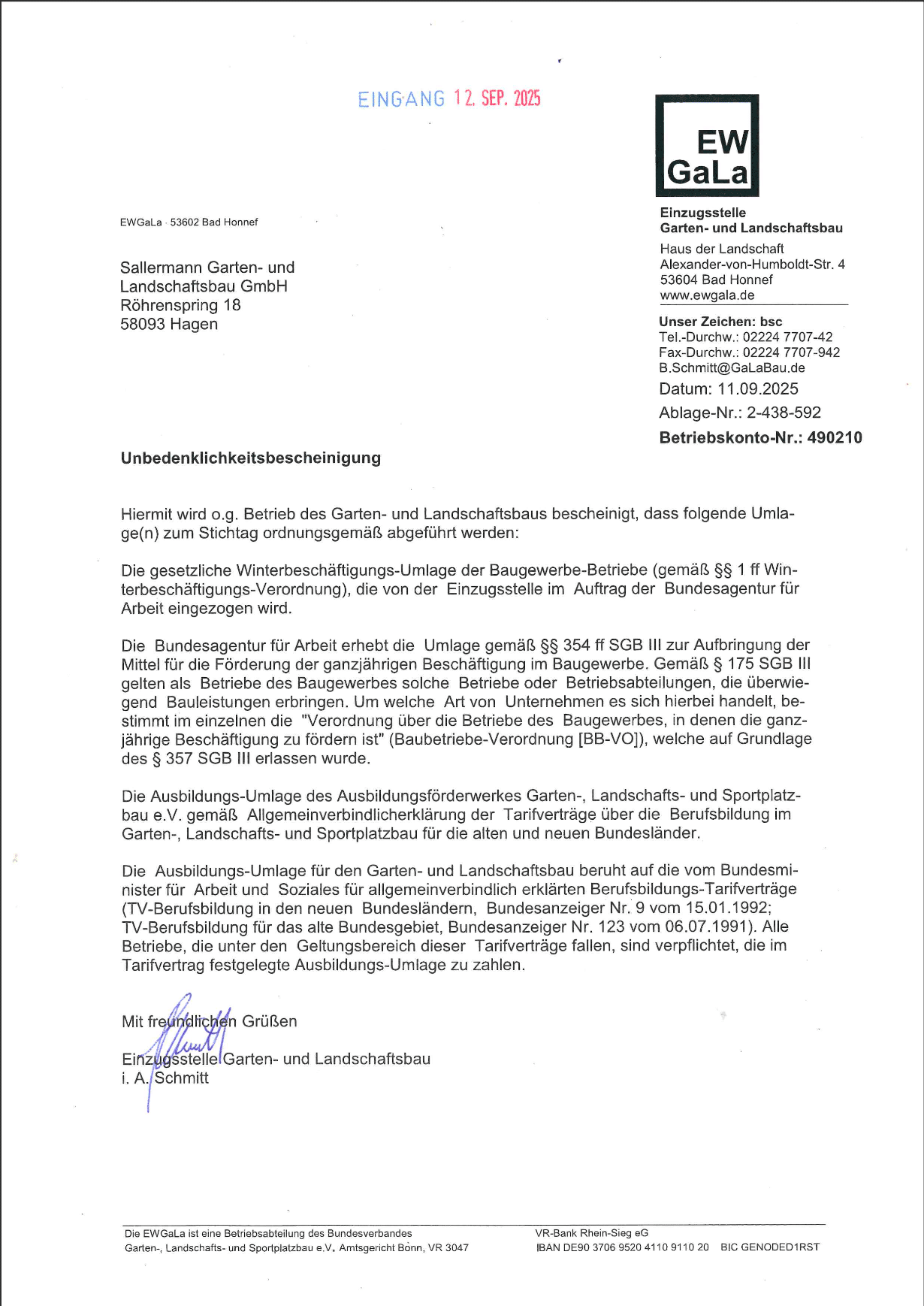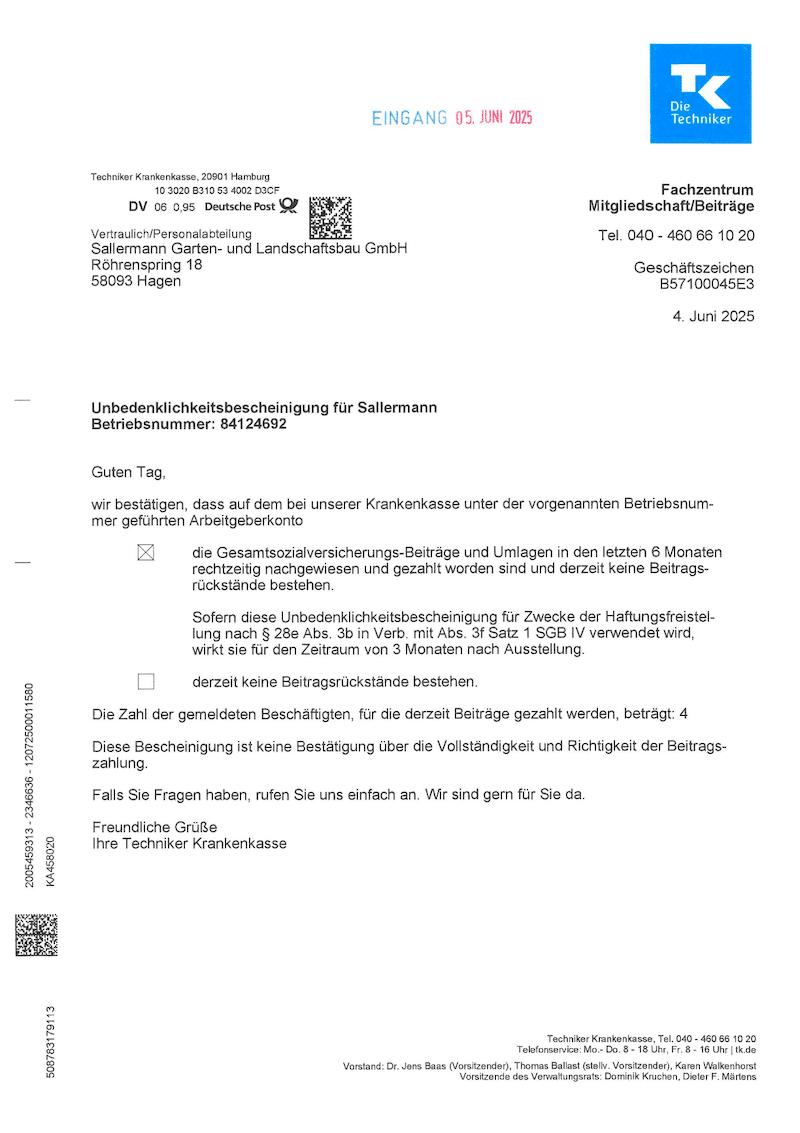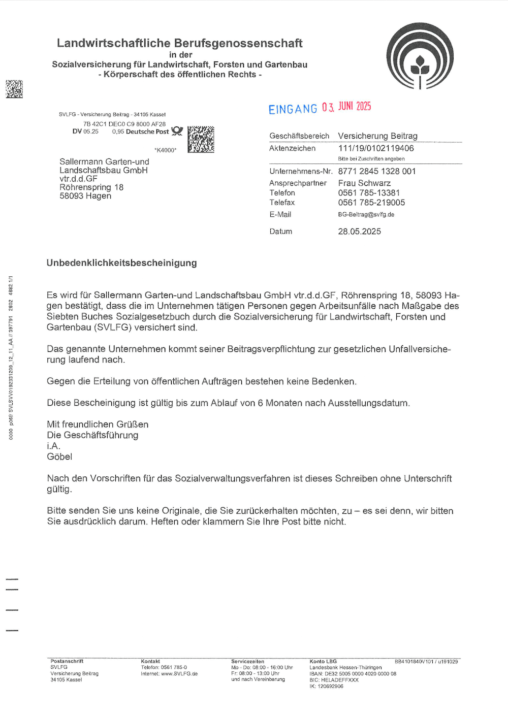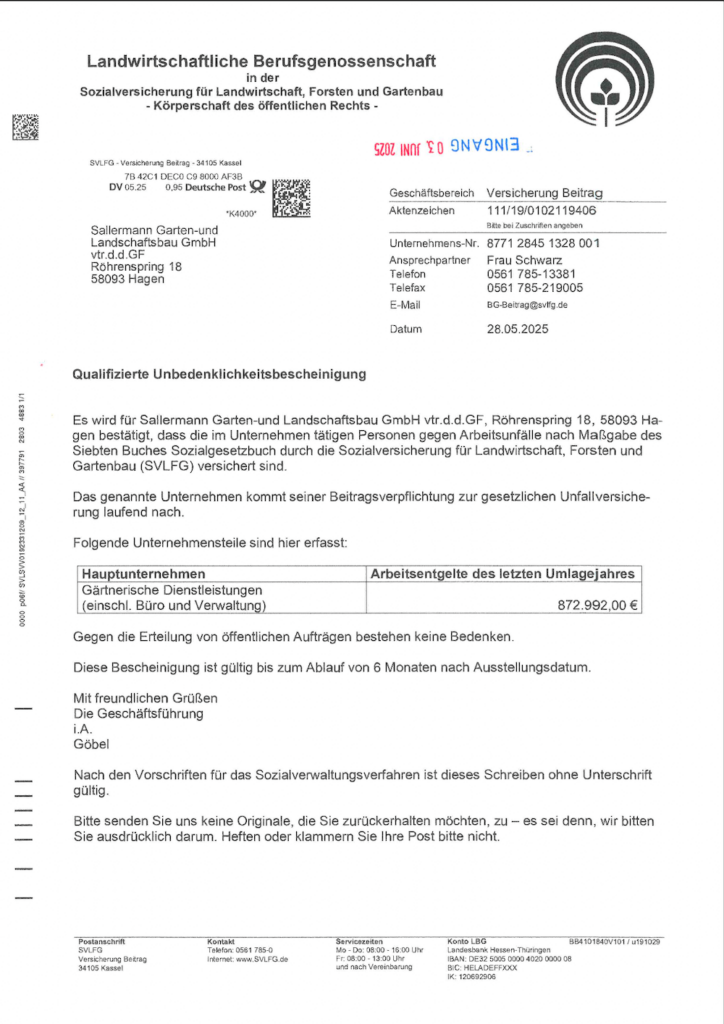 Qualifizierte Unbedenklichkeitsbescheinigung SVLFG